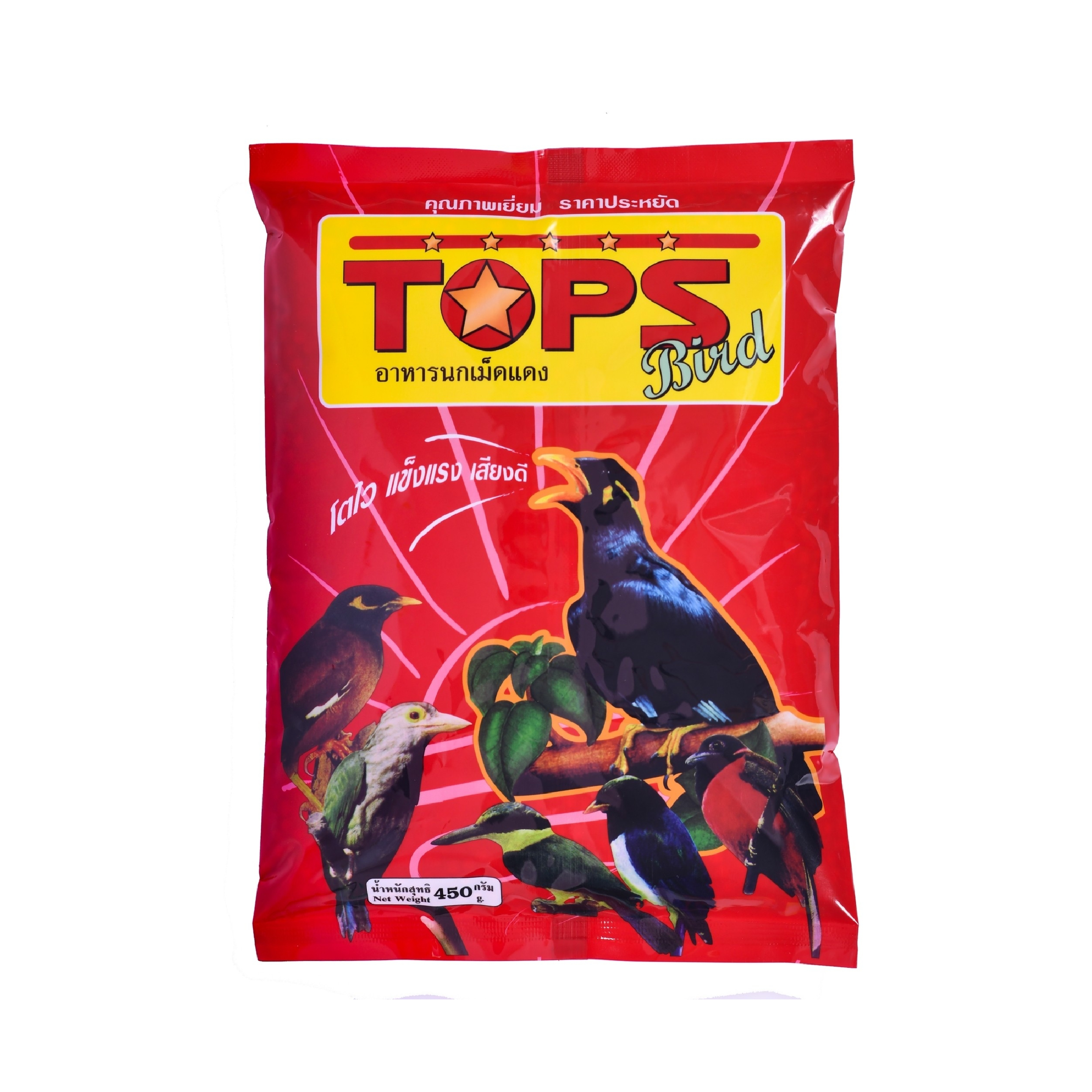 อาหารนกเม็ดแดง น้ำหนัก 450 กรัม ตรา Tops Bird โตไว แข็งแรง เสียงดี คุณภาพเยี่ยม ราคาประหยัด